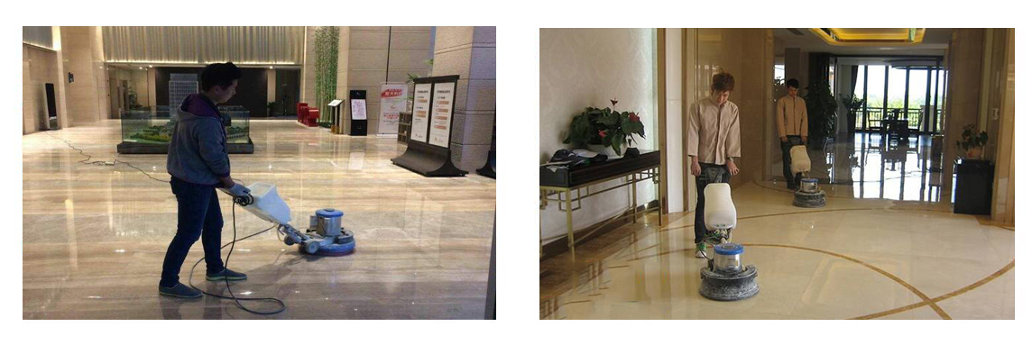 2. 石材翻新:針對磨損、劃痕、失去光澤的石材,利用打磨機配合不同目數的磨片,從粗磨到細磨逐步進行打磨,消